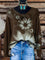Floral Art Print Buttoned Cardigan Sweater