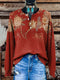 Knitted Visual Snowman Leopard Print Denim Patchwork Casual Cotton Sweatshirt