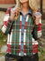 Red And Green Checkered Denim Patchwork Contrast Plaid Polo Collar Button Cardigan Sweater