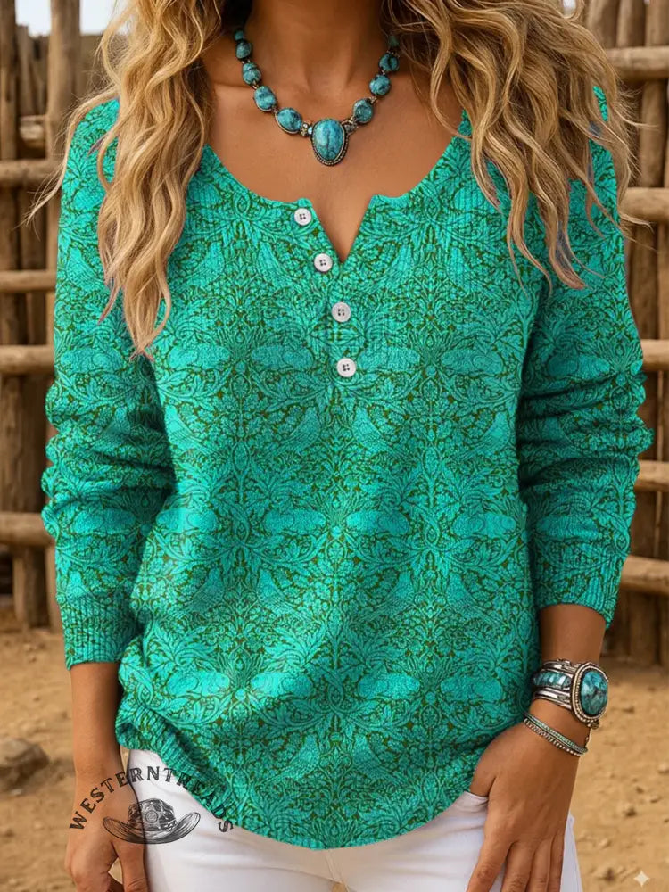 Retro Floral Art Pattern Print Buttoned Cardigan Sweater