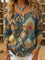 Retro Floral Art Print Buttoned Cardigan Sweater