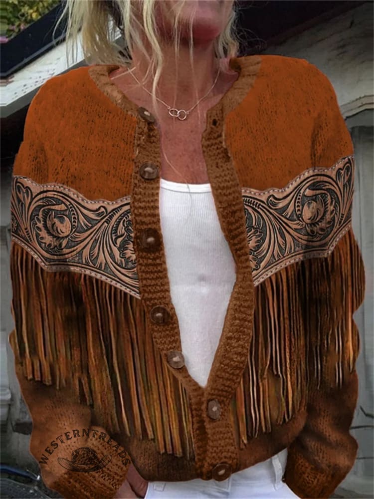 Retro Floral Stripes Print Buttoned Cardigan Sweater