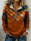 Retro Knitted Pattern Print Casual Half-zip Cotton Patchwork Sweatshirt