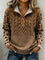 Retro Leopard Knitted Pattern Print Casual Half-zip Cotton Patchwork Sweatshirt