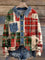 Retro Plaid Print Patchwork Denim Knit Pullover Sweater