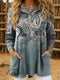 Vintage Art Print Casual Knitted Pocket Hooded Tunic Top