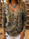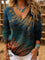 Vintage Art Print Casual V-Neck Sweater