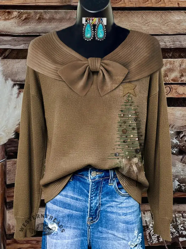 Vintage Christmas Print Buttoned Cardigan Sweater