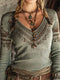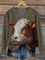 Vintage Cow Art Prints Casual V-neck Pullover Knit