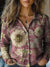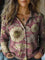Vintage Flowers Printed Casual Long Sleeve Lapel Sweater