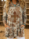 Vintage Paisley Art Print Casual Knitted Pocket Hooded Tunic Top