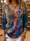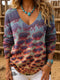 Vintage Western Bull Art Print Casual V-neck Sweater
