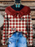 Women's Plaid and Bow Tie Print Casual Cotton Sweater