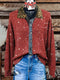 Women's Retro Abstract Pattern Print Casual Corduroy Top