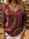 Women's Retro Aztec Art Print Henley Neck Sweater Top