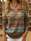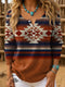 Women's Retro Aztec Art Print Henley Neck Sweater Top