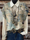Women's Retro Ethnic Print Casual V-neck Pullover Knit Sweater
