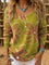Women's Retro Flowers Art Print Henley Neck Sweater Top