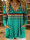Women's Vintage Printed Casual Knitted V-Neck Pocket Top