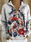Horse Art Print Casual Long Sleeve Zip Sweatshirt