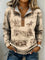 Retro Wild West Print Casual Half-Zip Cotton Sweatshirt
