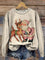 Vintage Christmas Art Print Casual Cotton Sweatshirt