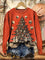 Vintage Christmas Art Print Casual Cotton Sweatshirt