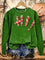 Vintage Christmas Candy Print Casual Cotton Sweatshirt