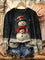 Vintage Christmas Snowman Print Casual Cotton Sweatshirt