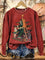 Vintage Christmas Tree Cat Casual Cotton Sweatshirt
