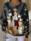 Vintage Christmas Tree Cat Print Casual Cotton Sweatshirt