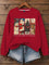 Vintage Christmas Tree Snowman Reindeer Santa Claus Print Casual Cotton Sweatshirt