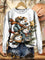 Vintage Merry Christmas Snowman Art Print Casual Cotton Sweatshirt
