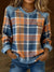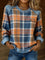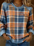 Vintage Plaid Panel Washed Denim Casual Sweatshirt