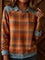 Vintage Plaid Panel Washed Denim Casual Sweatshirt