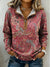 Vintage Print Casual Half-zip Cotton Sweatshirt
