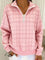 Women's Retro Plaid Print Casual Long Sleeve Zip Sweatshirt