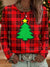 Women's Vintage Christmas Art Print Casual Crew Neck Long Sleeve T-shirt