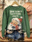 Vintage Christmas Santa Claus Print Casual Cotton Sweatshirt