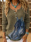 Vintage Western Print Christmas Henley Neck Sweater Top
