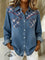 Women's Plaid and Denim Patchwork Casual Cotton Shirt