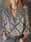 Women's Retro Plaid Floral Print Casual Cotton Shirt