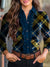 Women's Vintage Check Print Lantern Sleeve Velvet Top