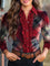 Women's Vintage Check Print Lantern Sleeve Velvet Top