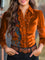 Women's Vintage Flowers Print Lantern Sleeve Velvet Top