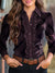 Women's Vintage Flowers Print Lantern Sleeve Velvet Top