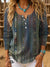 Women's Retro Color Stripes Art Print Henley Neck Sweater