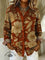 Women's Retro Floral Print Casual Cotton And Linen Ruffle Shirt