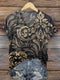 Retro Floral Pattern Print Casual V-neck T-shirt
