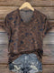 Retro Pattern Printed Casual V-Neck T-Shirt